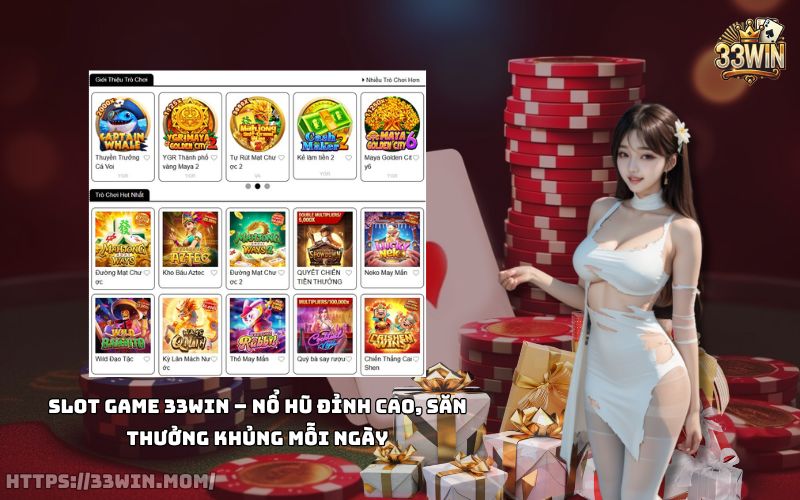 Slot game tại 33Win là thiên đường dành cho những ai đam mê cảm giác nổ hũ đầy phấn khích. Với hàng trăm tựa game đa dạng từ chủ đề thần thoại, phiêu lưu, đến văn hóa Á Đông hay hoạt hình hiện đại, người chơi sẽ không bao giờ nhàm chán.