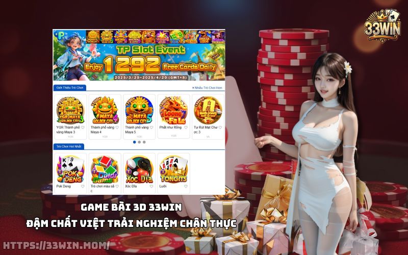 Game bài 3D tại 33Win là nơi hội tụ những tựa game quen thuộc với người Việt như Tiến lên miền Nam, Tá lả, Sâm lốc, Poker, hay Liêng. Giao diện được thiết kế hiện đại, hiệu ứng 3D chân thực mang đến cảm giác như đang ngồi tại một sòng bài thực thụ.
